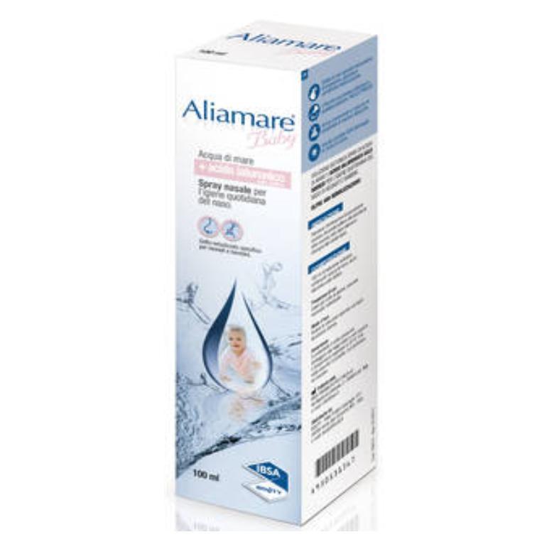 Dispositivo Medico CE, classe IIa. Soluzione isotonica spray di acqua di mare e ialuronato sodico per l'igiene quotidiana di naso nei bambini. Aliamare associa l'azione benefica e fluidificante dell'acqua marina proveniente dall'Arcipelago di Brhat, luogo naturalistico della Bretagna classificato Natura 2000, all'azione dell'acido ialuronico, che grazie alla sua capacità di legare e trattenere acqua, è in grado di idratare la mucosa e favorire la cicatrizzazione di eventuali microlesioni. La diluizione dell'acqua di mare fino a concentrazione isotonica rende inoltre Aliamare non irritante.Favorisce l'eliminazione di secrezioni in eccesso, dà pronto sollievo alla secchezza delle mucose, utile dopo interventi chirurgici alle cavità nasali.
