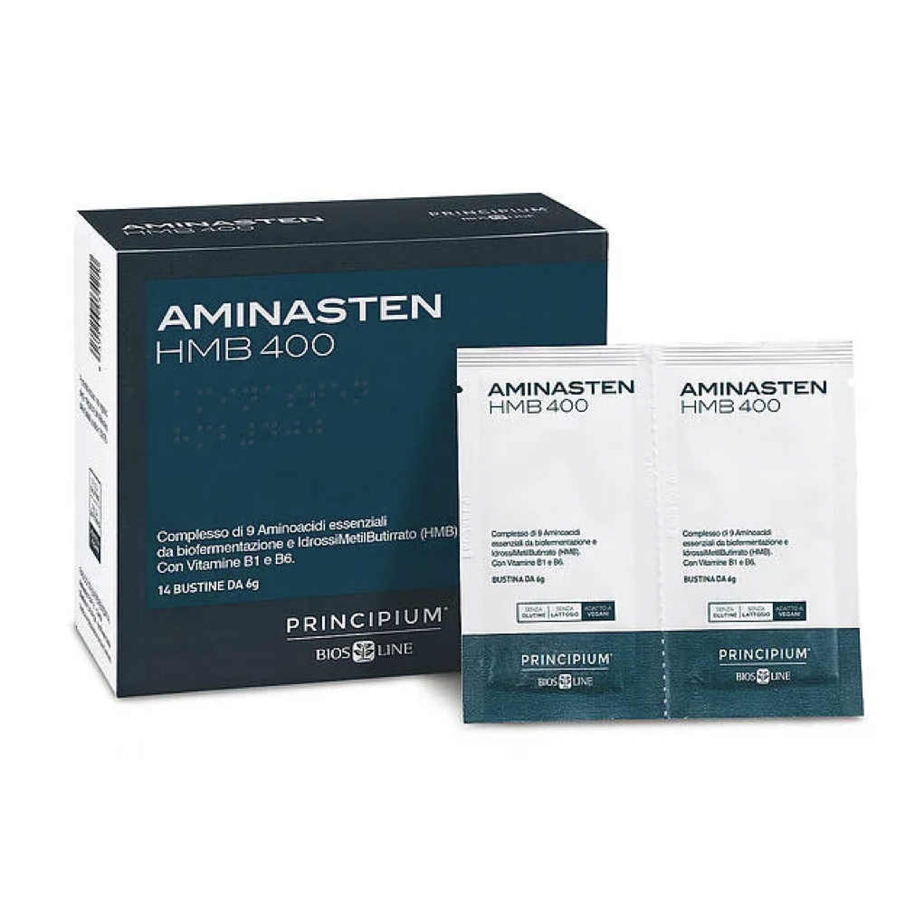Complesso di 9 aminoacidi essenziali da biofermentazione e idrossiMetilButirrato (HMB). Con vitamine B1 e B6.