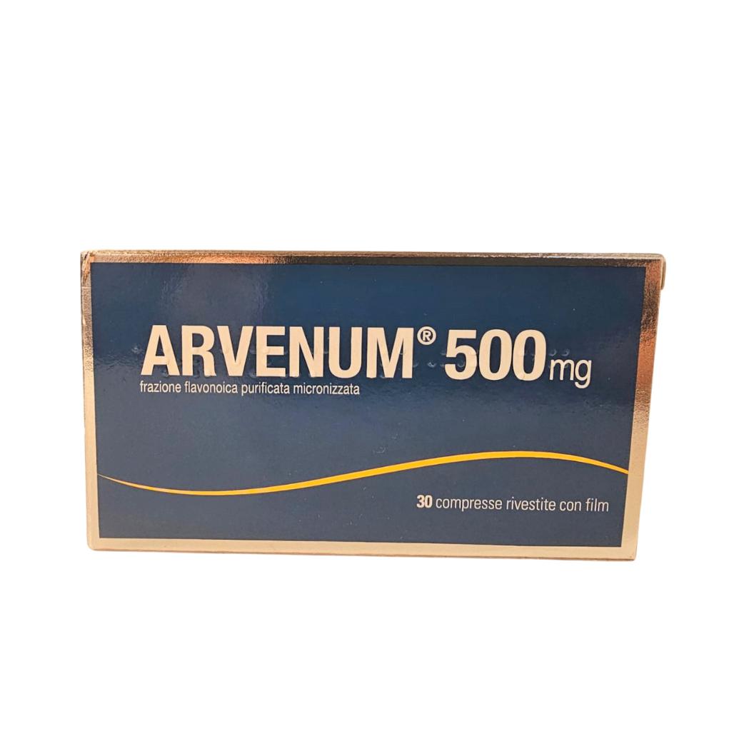 FOGLIO ILLUSTRATIVO ARVENUM 500 mg compresse rivestite con film Frazione flavonoica purificata micronizzata Categoria farmacoterapeutica Vasoprotettori Indicazioni terapeutiche Sintomi attribuibili ad insufficienza venosa; stati di fragilità capillare. Controindicazioni Ipersensibilità al principio attivo o ad uno qualsiasi degli eccipienti. Precauzioni per l'uso Nessuna. Interazioni Non sono stati effettuati studi di interazione. Informare il medico o il farmacista se si è recentemente assunto qualsiasi altro medicinale, anche quelli senza prescrizione medica. Avvertenze speciali Gravidanza Chiedere consiglio al medico o al farmacista prima di prendere qualsiasi medicinale. La sicurezza del farmaco in gravidanza non è stata determinata, pertanto è opportuno non somministrare il prodotto durante la gravidanza. Allattamento In assenza di dati sull’escrezione nel latte, il trattamento deve essere evitato durante l’allattamento, Effetti sulla capacità di guidare veicoli e di utilizzare macchinari Non sono stati condotti studi per valutare l’effetto della frazione flavonoica sulla capacità di guidare veicoli o di usare macchinari. Dose, modo e tempo di somministrazione 2 compresse rivestite con film al giorno (1 a mezzogiorno e 1 alla sera) al momento dei pasti, anche nell’insufficienza venosa del plesso emorroidario. Sovradosaggio Non sono segnalati casi di sovradosaggio. In caso di assunzione accidentale di una dose eccessiva di Arvenum avvertire immediatamente il medico o rivolgersi al più vicino ospedale. SE SI HA QUALSIASI DUBBIO SULL’USO DI QUESTO MEDICINALE, RIVOLGERSI AL MEDICO O AL FARMACISTA. Effetti indesiderati Come tutti i medicinali, Arvenum può causare effetti indesiderati sebbene non tutte le persone li manifestino. La frequenza delle possibili reazioni avverse elencate di seguito è descritta usando la seguente convenzione:- molto comune (si verificano in più di 1 paziente su 10) - comune (si verificano da 1 a 10 pazienti su 100) - non comune (si verificano da 1 a 10 pazienti su 1.000) - raro (si verificano da 1 a 10 pazienti su 10.000) - molto raro (si verificano in meno di 1 paziente su 10.000) - non nota (la frequenza non può essere definita sulla base dei dati disponibili). Gli effetti indesiderati includono: Patologie del sistema nervoso Raro: vertigini, cefalea, malessere Patologie gastrointestinali Comune: diarrea, dispepsia, nausea, vomito. Non comune: colite Non nota: dolore addominale. Patologie della cute e del tessuto sottocutaneo Raro: rash, prurito, orticaria. Non nota: edema al volto, alle labbra, alla palpebra (gonfiore); edema di Quincke (rapido ingrossamento del volto, delle labbra, della bocca, della lingua o della gola che può portare a difficoltà nel respirare). Patologie del sistema emolinfopoietico Non nota: trombocitopenia. Il rispetto delle istruzioni contenute nel foglio illustrativo riduce il rischio di effetti indesiderati. Segnalazione degli effetti indesiderati Se manifesta un qualsiasi effetto indesiderato, compresi quelli non elencati in questo foglio, si rivolga al medico, al farmacista o all’infermiere. Lei può inoltre segnalare gli effetti indesiderati direttamente tramite il sistema nazionale di segnalazione all’indirizzo www.agenziafarmaco.gov.it/it/responsabili. segnalando gli effetti indesiderati lei può contribuire a fornire maggiori informazioni sulla sicurezza di questo medicinale. Scadenza e conservazione Scadenza: vedere la data di scadenza indicata sulla confezione. Attenzione: non utilizzare il medicinale dopo la data di scadenza indicata sulla confezione. La data di scadenza indicata si riferisce al prodotto in confezionamento integro, correttamente conservato. I medicinali non devono essere gettati nell’acqua di scarico e nei rifiuti domestici. Chiedere al farmacista come eliminare i medicinali che non utilizza più. Questo aiuterà a proteggere l’ambiente. TENERE QUESTO MEDICINALE FUORI DALLA VISTA E DALLA PORTATA DEI BAMBINI. Composizione Ogni compressa contiene: principio attivo: Frazione flavonoica purificata micronizzata 500 mg - costituita da diosmina 450 mg, flavonoidi espressi in esperidina 50 mg - eccipienti: carbossimetilamido sodico; cellulosa microcristallina; gelatina; glicerina; ipromellosa; sodio laurilsolfato; ossido di ferro giallo E 172; ossido di ferro rosso E 172; titanio diossido; macrogol 6000; magnesio stearato; talco. Forma farmaceutica e contenuto 15 compresse rivestite con film30 compresse rivestite con film 60 compresse rivestite con film Via orale. E’ possibile che non tutte le confezioni siano commercializzate. Titolare dell’autorizzazione all’immissione in commercio: Istituto Farmaco Biologico Stroder srl Via di Ripoli, 207/v 50126 Firenze Produttore Les Laboratoires Servier Industrie 45520 Gidy (Francia)