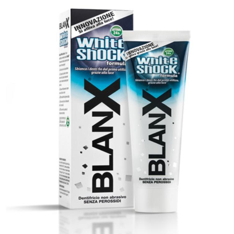 La forza della luce, la forza del sorriso: BlanX White Shock con tecnologia ActiluX. Un sorriso sano è un sorriso bianco e splendente. E' ciò che oggi viene chiesto come primo imperativo assoluto ai prodotti dell'igiene orale. Non sempre però le due cose coincidono perfettamente. Infatti, l'azione sbiancante di alcuni dentifrici può non assicurare la salute di denti e gengive. Dalla ricerca italiana BlanX è nata l'innovativa pasta dentifricia che grazie alla formula ActiluX sbianca i denti mantenendoli più sani e forti, sfruttando il potere naturale della luce.