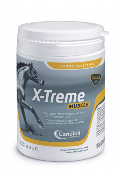 X-Treme Muscle è un prodotto indicato per il benessere dell’apparato muscolare del cavallo sportivo, in particolare durante i periodi di intenso training. L’azione benefi ca della beta-alanina, precursore della carnosina, sul metabolismo muscolare e sulla formazione di acido lattico, si associa a quella della lisina, che è un aminoacido necessario per un corretto sviluppo muscolare.