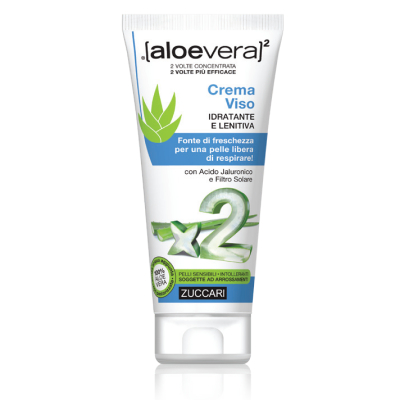 Crema Viso idratante e lenitiva formulata con Aloe Vera e senza acqua aggiunta. Azione protettiva grazie agli estratti di Acido Ialuronico a 2 pesi molecolari e Vitamine. Formula brevettata Zuccari AJDA (Acido Ialuronico Da Aloe).