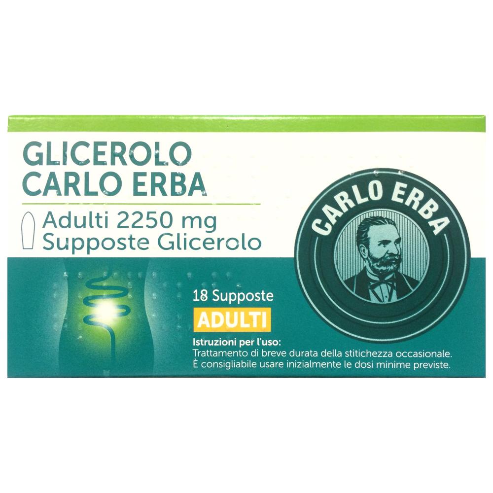 Foglio illustrativo: informazioni per il paziente GLICEROLO CARLO ERBA Prima infanzia 900 mg supposte GLICEROLO CARLO ERBA Bambini 1375 mg supposte GLICEROLO CARLO ERBA Adulti 2250 mg supposte Glicerolo Legga attentamente questo foglio prima di usare questo medicinale perché contiene importanti informazioni per lei. Usi questo medicinale sempre come esattamente descritto in questo foglio o come il medico o il farmacista le ha detto di fare. - Conservi questo foglio. Potrebbe aver bisogno di leggerlo di nuovo. - Se desidera maggiori informazioni o consigli, si rivolga al farmacista. - Se si manifesta uno qualsiasi degli effetti indesiderati, tra cui effetti non elencati in questo foglio, si rivolga al medico o al farmacista. Vedere paragrafo 4. - Si rivolga al medico se non nota miglioramenti o se nota un peggioramento dei sintomi dopo un breve periodo di trattamento. Contenuto di questo foglio: 1. Che cos’è GLICEROLO CARLO ERBA e a cosa serve 2. Cosa deve sapere prima di usare GLICEROLO CARLO ERBA 3. Come usare GLICEROLO CARLO ERBA 4. Possibili effetti indesiderati 5. Come conservare GLICEROLO CARLO ERBA 6. Contenuto della confezione e altre informazioni 1. Che cos’è GLICEROLO CARLO ERBA e a cosa serve Il glicerolo, principio attivo di questo medicinale, serve per facilitare l’eliminazione delle feci.L'effetto lassativo si ottiene grazie alla capacità che ha il glicerolo di ammorbidire le feci e di provocare una leggera azione irritante locale che stimola i movimenti intestinali. Questo medicinale è indicato per il sollievo sintomatico della stitichezza occasionale e transitoria. Si rivolga al medico se non si sente meglio o se si sente peggio dopo un breve periodo di trattamento. 2. Cosa deve sapere prima di usare GLICEROLO CARLO ERBA Non usi GLICEROLO CARLO ERBA se: è allergico al principio attivo o ad uno qualsiasi degli altri componenti di questo medicinale (elencati al paragrafo 6); ha nausea o vomito,un’ostruzione o un restringimento (stenosi) dell’intestino,o qualsiasi situazione di dolore all’addome della quale non conosce la causa; ha dolore e/o sanguinamento del retto (ad esempio in caso di emorroidi); è in uno stato grave di disidratazione che si manifesta con bocca secca e appiccicosa, sete, scarsità di urina, assenza o scarsità di lacrime e pelle secca. Avvertenze e precauzioni I lassativi devono essere usati il meno frequentemente possibile e per non più di 7 giorni; l’uso per periodi di tempo maggiori richiede la prescrizione del medico.Durante il trattamento beva almeno 6-8 bicchieri di acqua, o altri liquidi, in modo da favorire l’ammorbidimento delle feci.L’abuso di lassativi può causare dipendenza (con possibile necessità di aumentare progressivamente il dosaggio), stitichezza cronica e perdita delle normali funzioni intestinali (atonia intestinale). Inoltre l’abuso potrebbe causare diarrea persistente con conseguente perdita di acqua (disidratazione), sali minerali, specialmente potassio (ipopotassemia) ed altri fattori nutritivi essenziali. La perdita di sali minerali causa alterazioni degli ioni presenti nel sangue (elettrolitici) caratterizzati dai seguenti sintomi: sete, vomito, indebolimento, edema, dolori alle ossa (osteomalacia) e ipoalbuminemia. Effetti indesiderati più gravi sono le disfunzioni del cuore e dei muscoli specialmente in caso di trattamento contemporaneo con alcuni farmaci per il cuore (glicosidi cardiaci), con farmaci che aumentano la diuresi (diuretici) o corticosteroidi. Si rivolga al medico prima di usare GLICEROLO CARLO ERBA: seè anziano o non è in buone condizioni di salute; se la necessità di un lassativo deriva da un improvviso cambiamento delle precedenti abitudini intestinali (frequenza e caratteristiche delle evacuazioni) che duri da più di due settimane; nei bambini con meno di 12 anni. Se l’uso del lassativo non riesce a produrre effetti dopo un breve periodo di trattamento, si rivolga al medico. Altri medicinali e GLICEROLO CARLO ERBA Informi il medico o il farmacista se sta assumendo, ha recentemente assunto o potrebbe assumere qualsiasi altro medicinale. Gravidanza e allattamento Se è in corso una gravidanza, se sospetta o sta pianificando una gravidanza, o se sta allattando con latte materno chieda consiglio al medico o al farmacista prima di usare questo medicinale. Guida di veicoli e utilizzo di macchinari Questo medicinale non altera la capacità di guidare veicoli o di usare macchinari. 3. Come usare GLICEROLO CARLO ERBA Usi questo medicinale seguendo sempre esattamente quanto riportato in questo foglio o le istruzioni del medico o del farmacista. Se ha dubbi consulti il medico o il farmacista. La dose corretta è quella minima sufficiente a produrre una facile evacuazionedi feci molli. È consigliabile usare inizialmente le dosi minime previste. I lassativi devono essere usati il meno frequentemente possibile e per non più di 7 giorni. Una dieta ricca di liquidi favorisce l’effetto del medicinale. Uso negli adulti e negli adolescenti(12 - 18 anni) La dose raccomandata è di 1 supposta adulti, 1 o 2 volte al giorno. Uso nei bambini (meno di 12 anni) Bambini di età compresa tra 2 - 11 anni: 1 supposta bambini, 1 o 2 volte al giorno. Bambini di età compresa tra 1 mese - 2 anni: 1 supposta prima infanzia,1 o 2 volte al giorno. Utilizzare GLICEROLO CARLO ERBA solo dopo aver consultato il medico. Modo di somministrazione: Togliere la supposta dal suo contenitore e, se necessario, inumidirla per facilitarne l'introduzione rettale. Qualora le supposte apparissero molto morbide, immergere i contenitori, prima di aprirli, in acqua fredda. Se usa più GLICEROLO CARLO ERBA di quanto deveNon sono stati riportati episodi di sovradosaggio. In ogni caso, dosi eccessive (abuso di lassativi, uso frequente o prolungato o con dosi elevate) possono causare dolori all’addome e diarrea con perdite di liquidi ed elettroliti. Tali perdite devono essere reintegrate con assunzione di acqua o altri liquidi