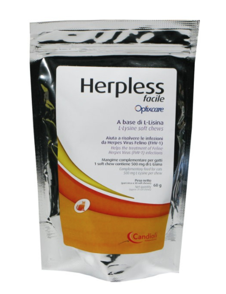 Herpless facile è indicato quale complemento alle usuali terapie in caso di infezione da Herpes Virus nei gatti (FHV-1) di qualunque età. È consigliabile utilizzarlo, in associazione alle terapie specifiche, quanto più precocemente possibile nei gattini affetti da infezione da Herpes Virus Felino clinicamente manifesta. Può essere efficacemente utilizzato, da solo o in associazione alle terapie specifiche, anche per ridurre gravità e frequenza delle forme ricorrenti o recidivanti.