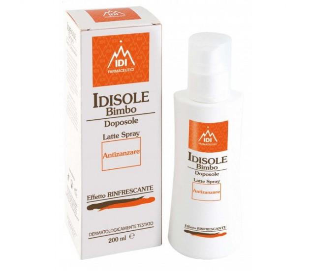 Idisole bimbo Latte Spray Doposole Antizanzare, efficace contro gli eritemi, gli arrossamenti e contro le punture di insetto.