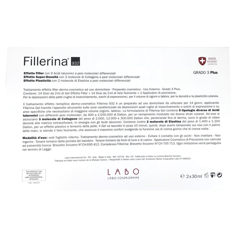 Il trattamento va applicato tutte al mattino o alla sera per 14 giorni utilizzando 2 ml di filler ad effetto riempitivo in gel da distribuire sul letto delle rughe, sul microrilievo e sulle zone con necessità di rimpolpamento (zigomi, labbra). Si consiglia di applicare Fillerina dopo una normale detersione eliminando sebo ed impurità affinchè i principi attivi del gel vengano assorbiti più rapidamente.