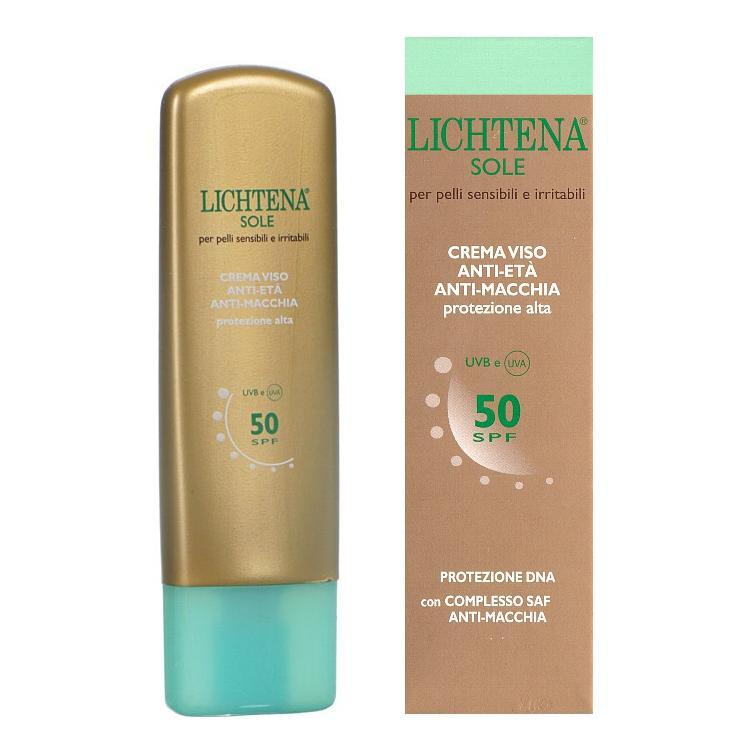 Protezione DNA: Lichtena Sole crema viso anti-età anti-macchia spf 50 è arricchita da un complesso di attivi brevettati, Catechina e Quercetina, che neutralizzazone l'eccesso di radicali liberi e mantengono le difese auto-immunitarie che si riducono durante l'esposizione al sole. Questo consente di rallentare i processi di invecchiamento cutaneo foto-indotto e la formazione delle rughe.