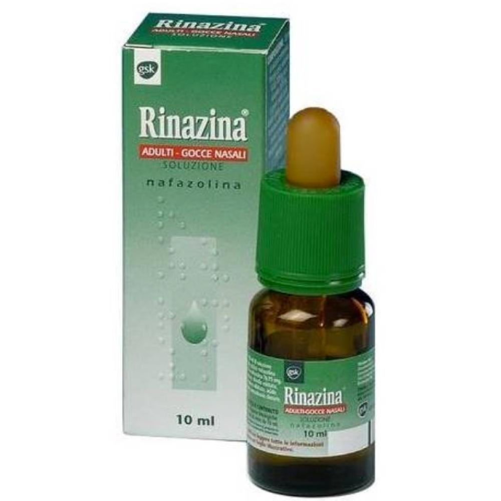 RINAZINA 1 MG/ML GOCCE NASALI, SOLUZIONE nafazolina PRIMA DELL’USO LEGGERE CON ATTENZIONE TUTTE LE INFORMAZIONI CONTENUTE NEL FOGLIO ILLUSTRATIVO Questo è un medicinale di AUTOMEDICAZIONE che potete usare per curare disturbi lievi e transitori facilmente riconoscibili e risolvibili senza ricorrere all’aiuto del medico. Può quindi essere acquistato senza ricetta ma va usato correttamente per assicurarne l’efficacia e ridurne gli effetti indesiderati: • per maggiori informazioni e consigli rivolgersi al farmacista • consultare il medico se il disturbo non si risolve dopo un breve periodo di trattamento. DENOMINAZIONE DEL MEDICINALE RINAZINA 1 MG/ML GOCCE NASALI, SOLUZIONE nafazolina CHE COSA E’ RINAZINA GOCCE NASALI è un decongestionante per uso nasale. PERCHE’ SI USA RINAZINA GOCCE NASALI è indicato come decongestionante nasale in corso di riniti e faringiti acute catarrali, di riniti allergiche, di sinusiti acute. QUANDO NON DEVE ESSERE USATO Ipersensibilità al principio attivo o ad uno qualsiasi degli eccipienti. Malattie cardiache ed ipertensione arteriosa gravi. Glaucoma. Ipertiroidismo. Il medicinale non deve essere assunto dai bambini di età inferiore ai 12 anni. Non somministrare durante e nelle due settimane successive a terapia con farmaci antidepressivi. PRECAUZIONI PER L’USO Impiegare con cautela negli anziani e nei soggetti affetti da ipertrofia prostatica per il pericolo di ritenzione urinaria. QUALI MEDICINALI POSSONO MODIFICARE L’EFFETTO DEL MEDICINALE Il farmaco può interagire con farmaci antidepressivi (vedere Quando non deve essere usato). Informare il medico o il farmacista se si è recentemente assunto qualsiasi altro medicinale, anche quelli senza prescrizione medica. E’ IMPORTANTE SAPERE CHE Nei pazienti con malattie cardiovascolari, specialmente negli ipertesi, l’uso dei decongestionanti nasali deve essere comunque di volta in volta sottoposto al giudizio del medico. L’uso protratto di vasocostrittori può alterare la normale funzione della mucosa del naso e dei seni paranasali inducendo anche assuefazione al farmaco. Il ripetere le applicazioni per un lungo periodo di tempo può risultare dannoso. Benzalconio cloruro (BAC) contenuto come conservante in RINAZINA GOCCE NASALI, specie quando usato per lunghi periodi, può provocare un rigonfiamento della mucosa nasale.Se si sospetta tale reazione (congestione nasale persistente), deve essere usato, se possibile, un medicinale per uso nasale senza BAC. Se tali medicinali per uso nasale senza BAC non fossero disponibili, dovrà essere considerata un’altra forma farmaceutica. Può causare broncospasmo. L’uso, specie se prolungato, dei prodotti topici può dare luogo a fenomeni di sensibilizzazione; in tal caso è necessario interrompere il trattamento e, se del caso, istituire una terapia idonea. Interrompere l’assunzione del farmaco e consultare immediatamente il medico in caso di insorgenza improvvisa di grave mal di testa. Per chi svolge attività sportiva: l’uso del farmaco senza necessità terapeutica costituisce doping e può determinare comunque positività ai test antidoping. Il contenitore di questo medicinale è costituito di gomma latex. Può causare gravi reazioni allergiche. Quando può essere usato solo dopo aver consultato il medico In gravidanza e allattamento (vedere Cosa fare durante la gravidanza e l’allattamento). Cosa fare durante la gravidanza e l’allattamento Chiedere consiglio al medico o al farmacista prima di prendere qualsiasi medicinale. In gravidanza e nell’allattamento, RINAZINA GOCCE NASALI deve essere usato solo dopo aver consultato il medico e aver valutato con lui il rapporto rischio/beneficio nel proprio caso. Consultate il medico nel caso sospettiate uno stato di gravidanza o desideriate pianificare una maternità. Effetti sulla capacità di guidare veicoli e sull’uso di macchinari Non sono noti effetti indesiderati sulla capacità di guidare veicoli o sull'uso di macchinari. COME USARE QUESTO MEDICINALE Quanto Adulti: 2 - 3 gocce in ciascuna narice, 2 - 3 volte al giorno. Popolazione Pediatrica Il farmaco è controindicato nei bambini di età inferiore ai 12 anni (vedere Quando non deve essere usato). Attenersi scrupolosamente alle dosi consigliate. Un dosaggio superiore del prodotto anche se assunto per via topica e per breve periodo di tempo può dare luogo ad effetti sistemici gravi. Quando e per quanto tempo In assenza di risposta terapeutica completa entro pochi giorni, consultare il medico; in ogni caso, il trattamento non deve essere protratto per oltre una settimana. Consultate il medico se il disturbo si presenta ripetutamente o se avete notato un qualsiasi cambiamento recente delle sue caratteristiche. Come Attenzione: il sistema è dotato di un sistema di chiusura di sicurezza per rendere difficile l’apertura ai bambini. Seguire con attenzione le istruzioni illustrate. 1. Per aprire il flacone è necessario premere e contemporaneamentesvitare. Si consiglia di appoggiare il flacone su una base. 2. Per chiudere il flacone riavvitare normalmente. 3. Per utilizzi successivi seguire le istruzioni dal punto 1. COSA FARE SE AVETE PRESO UNA DOSE ECCESSIVA DI MEDICINALE Il prodotto, se accidentalmente ingerito o se impiegato per lungo periodo a dosi eccessive, può determinare fenomeni tossici. Esso va tenuto lontano dalla portata dei bambini poiché l’ingestione accidentale può provocare sedazione spiccata. In caso di sovradosaggio possono comparire ipertensione arteriosa, tachicardia, fotofobia, cefalea intensa, oppressione toracica, e, nei bambini, ipotermia e grave depressione del Sistema Nervoso Centrale con spiccata sedazione, che richiedono l’adozione di adeguate misure d’urgenza. In caso di assunzione accidentale di una dose eccessiva di RINAZINA GOCCE NASALI avvertire immediatamente il medico o rivolgersi al più vicino ospedale. Se si ha qualsiasi dubbio sull’uso di RINAZINA GOCCE NASALI, rivolgersi al medico o al f