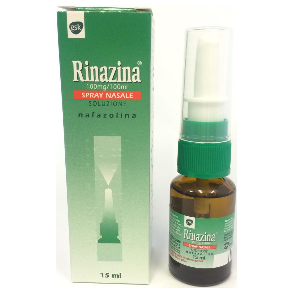 Foglio illustrativo RINAZINA 100 mg/100 ml SPRAY NASALE, SOLUZIONE nafazolina PRIMA DELL’USO LEGGERE CON ATTENZIONE TUTTE LE INFORMAZIONI CONTENUTE NEL FOGLIO ILLUSTRATIVO Questo è un medicinale di AUTOMEDICAZIONE che potete usare per curare disturbi lievi e transitori facilmente riconoscibili e risolvibili senza ricorrere all’aiuto del medico. Può quindi essere acquistato senza ricetta ma va usato correttamente per assicurarne l’efficacia e ridurne gli effetti indesiderati: • per maggiori informazioni e consigli rivolgersi al farmacista • consultare il medico se il disturbo non si risolve dopo un breve periodo di trattamento. DENOMINAZIONE DEL MEDICINALE RINAZINA 100 mg/100 ml SPRAY NASALE, SOLUZIONE nafazolina CHE COSA E’ RINAZINA SPRAY NASALE è un decongestionante per uso nasale. PERCHE’ SI USA RINAZINA SPRAY NASALE è indicato come decongestionante nasale in corso di riniti e faringiti acute catarrali, di riniti allergiche, di sinusiti acute. QUANDO NON DEVE ESSERE USATO Ipersensibilità al principio attivo o ad uno qualsiasi degli eccipienti. Malattie cardiache ed ipertensione arteriosa gravi. Glaucoma. Ipertiroidismo. Il medicinale non deve essere assunto dai bambini di età inferiore ai 12 anni. Non somministrare durante e nelle due settimane successive a terapia con farmaci antidepressivi. PRECAUZIONI PER L’USO Impiegare con cautela negli anziani e nei soggetti affetti da ipertrofia prostatica per il pericolo di ritenzione urinaria. QUALI MEDICINALI POSSONO MODIFICARE L’EFFETTO DEL MEDICINALE Il farmaco può interagire con farmaci antidepressivi (vedere Quando non deve essere usato). Informare il medico o il farmacista se si è recentemente assunto qualsiasi altro medicinale, anche quelli senza prescrizione medica. E’ IMPORTANTE SAPERE CHE Nei pazienti con malattie cardiovascolari, specialmente negli ipertesi, l’uso dei decongestionanti nasali deve essere comunque di volta in volta sottoposto al giudizio del medico. L’uso protratto di vasocostrittori può alterare la normale funzione della mucosa del naso e dei seni paranasali inducendo anche assuefazione al farmaco. Il ripetere le applicazioni per un lungo periodo di tempo può risultare dannoso.Benzalconio cloruro (BAC) contenuto come conservante in RINAZINA SPRAY NASALE, specie quando usato per lunghi periodi, può provocare un rigonfiamento della mucosa nasale. Se si sospetta tale reazione (congestione nasale persistente), deve essere usato, se possibile, un medicinale per uso nasale senza BAC. Se tali medicinali per uso nasale senza BAC non fossero disponibili, dovrà essere considerata un’altra forma farmaceutica. Può causare broncospasmo. L’uso, specie se prolungato, dei prodotti topici può dare luogo a fenomeni di sensibilizzazione; in tal caso è necessario interrompere il trattamento e, se del caso, istituire una terapia idonea. Interrompere l’assunzione del farmaco e consultare immediatamente il medico in caso di insorgenza improvvisa di grave mal di testa. Quando può essere usato solo dopo aver consultato il medico In gravidanza e allattamento (vedere Cosa fare durante la gravidanza e l’allattamento). Cosa fare durante la gravidanza e l’allattamento Chiedere consiglio al medico o al farmacista prima di prendere qualsiasi medicinale. In gravidanza e nell’allattamento, RINAZINA SPRAY NASALE deve essere usato solo dopo aver consultato il medico e aver valutato con lui il rapporto rischio/beneficio nel proprio caso. Consultate il medico nel caso sospettiate uno stato di gravidanza o desideriate pianificare una maternità. Effetti sulla capacità di guidare veicoli e sull’uso di macchinari Non sono noti effetti indesiderati sulla capacità di guidare veicoli o sull'uso di macchinari. Per chi svolge attività sportiva: l’uso del farmaco senza necessità terapeutica costituisce doping e può determinare comunque positività ai test antidoping. COME USARE QUESTO MEDICINALE Quanto 1-2 nebulizzazioni in ciascuna narice, 2-3 volte al giorno. Popolazione Pediatrica Il farmaco è controindicato nei bambini di età inferiore ai 12 anni (vedere Quando non deve essere usato). Attenersi scrupolosamente alle dosi consigliate. Un dosaggio superiore del prodotto anche se assunto per via topica e per breve periodo di tempo può dare luogo ad effetti sistemici gravi. Quando e per quanto tempo In assenza di risposta terapeutica completa entro pochi giorni, consultare il medico; in ogni caso, il trattamento non deve essere protratto per oltre una settimana. Consultate il medico se il disturbo si presenta ripetutamente o se avete notato un qualsiasi cambiamento recente delle sue caratteristiche. Come 1) Se il flacone è nuovo premere due-tre volte il dosatore, senza introdurre nelle narici, al fine di riempire la pompa. 2) Tenere il flacone in posizione verticale; introdurre nella narice la sua estremità e premere con moto rapido e deciso durante un'inspirazione dopo essersi soffiato il naso. Per applicazioni successive, seguire le istruzioni al punto 2).COSA FARE SE AVETE PRESO UNA DOSE ECCESSIVA DI MEDICINALE Il prodotto, se accidentalmente ingerito o se impiegato per lungo periodo a dosi eccessive, può determinare fenomeni tossici. Esso va tenuto lontano dalla portata dei bambini poiché l’ingestione accidentale può provocare sedazione spiccata. In caso di sovradosaggio possono comparire ipertensione arteriosa, tachicardia, fotofobia, cefalea intensa, oppressione toracica, e, nei bambini, ipotermia e grave depressione del Sistema Nervoso Centrale con spiccata sedazione, che richiedono l’adozione di adeguate misure d’urgenza. In caso di assunzione accidentale di una dose eccessiva di RINAZINA SPRAY NASALE avvertire immediatamente il medico o rivolgersi al più vicino ospedale. Se si ha qualsiasi dubbio sull’uso di RINAZINA SPRAY NASALE, rivolgersi al medico o al farmacista. EFFETTI INDESIDERATI Come tutti i medicinali, RINAZINA SPRAY NASALE può causare effetti indesiderati sebbene no