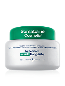 Trattamento Scrub levigante Somatoline per una pelle liscia e levigata fino dalla prima applicazione. Il prodotto è efficace grazie al Bioscrub-complex™, un complesso attivo naturale a base di Sali marini a granulometria differenziata, arricchiti da uno speciale concentrato di 92 diversi elementi.