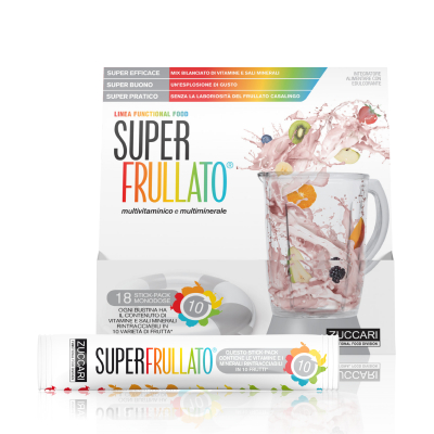 Super Frullato ® è l’integratore alimentare della Linea Functional Food di Zuccari utile per contribuire a ridurre la stanchezza favorendo la trasformazione del cibo in energia, per favorire le naturali difese immunitarie, grazie alla Vitamina C di arancia e allo Zinco di mango, per garantire un’azione antiossidante, grazie alla Vitamine E di mirtilli e al Selenio di more.
