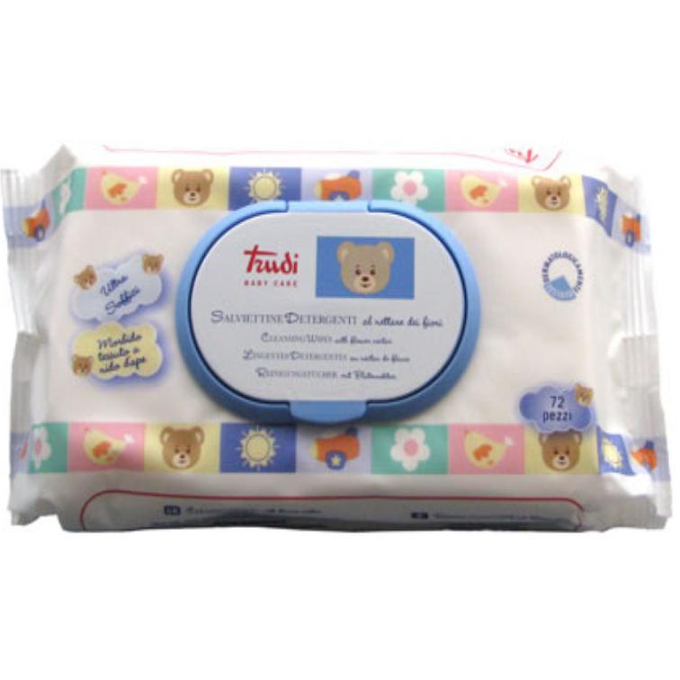 Salviettine igieniche per pelli sensibili al nettare di fiori, noto per le proprietà nutrienti, sempre necessarie vicino al fasciatoio e nella borsa da viaggio, le salviettine umidificate TRUDI, grazie al loro particolare tessuto in microspugna a nido d'ape, accarezzano morbidamente il sederino del bebè ad ogni cambio pannolino, lasciando sulla pelle uno strato di leggera emulsione fluida a base di nettare dei fiori. Le salviettine igieniche TRUDI, grazie all'azione combinata di sostanze funzionali quali la Glicerina e Trigliceride, dalle specifiche proprietà idratanti e protettive, svolgono un'azione emolliente e rinfrescante, lasciando la pelle morbida e profumata.